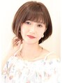 襟足すっきりとしたボブスタイルです。コロンとしたシルエットが女性らしい大人可愛いスタイルです。襟足ギリギリでカットしているスタイルなので首がスッと綺麗に見えます。毛先のほうにくにゃっとゆるめにニュアンスのパーマがかかっています。