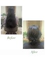 スーパーロングから鎖骨くらいのミディアムヘアにスタイルチェンジ。たっぷりレイヤーを入れ、ランダムな動きをつくるパーマをかけます。耳後ろにはポイントでイヤリングカラーを入れ、遊びのあるヘアスタイルに。