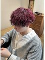 メンズパーマの王道人気波巻きパーマに上と下で塗り分けて作るツートーンのデザインカラーを組み合わせました!