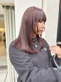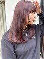 顔まわりにレイヤーをいれてアイロン仕上げでおしゃれスタイル。カラーはボルドーピンクカラーにして鮮やかに可愛いさをプラス!