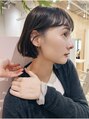 短めショートボブにカラーはカーキベージュ*ほんのり巻いたらオン眉になる長さでナチュラルも動きも楽しめるヘアに