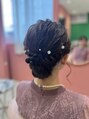 【お呼ばれセット、シニョンスタイル】髪の毛を全部あげて少し動きをつけたシニョンスタイル王道お呼ばれセットで、綺麗さのあるヘアスタイルです