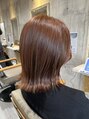 肩下スレスレの外はねボブ♪艶カラーで肌馴染みのいいピンクブラウンに♪