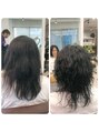 ソフトツイスト+マンバンヘア3枚目の写真はビフォーアフターあえてダメージさせてツイストした方がしっかりとかかるというのは違うわけで、ツイストだとしても髪を傷めずパーマをかけた方が何よりお客さんが自宅で髪を扱いやすい。