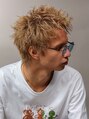 あえてツーブロックや刈り上げの入れない、無造作ベリーショートスタイル。少し野暮ったく男らしいイメージを与える『グランジ質感』と短めでシャープな質感の『スパイキーショート』を合わせた、最旬ワイルドメンズヘア。カラーはゴールドベージュ。