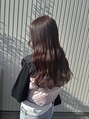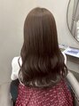 赤みを抑えた柔らかいブラウンカラーで、透明感とツヤ感をプラス。顔まわりにレイヤーを入れることで、自然な動きが出て軽やかな印象に仕上げました◎