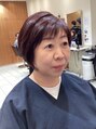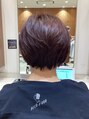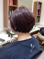 襟足を甘く残し、あまりショートになり過ぎず、落ち着いた感じのグラデーションボブスタイルです。首や顔周りをすっきりし過ぎたくない方にはお勧めです!カラーはレッドヴィオレットブラウンです。ナチュラルドライでOKです。