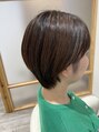 ショートスタイルです。耳にかけてもスタイルが決まります。バームをつけてまとまりを出しています。頭の形や髪質など見極めながら切らせて頂きますので、是非お任せ下さい。