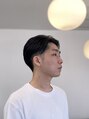 2ブロックメンズカット。気温が高くなり、サイドはすぐ気になりすぐ伸びるので、短めにカットしています。前髪は目にかからない長さにしています。ジェルなど、ツヤのある少し固まるスタイリング剤を使うのがオススメです。