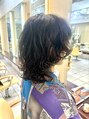 全体的に毛量はあってもトップがペタッとなりやすい大人の髪は、襟足の「くびれ」が解決のカギです。襟足部分だけすっきり見せるとトップに自然なボリューム感が出てきます。後は乾かすだけ。仕上げのスタイリング剤はバームを使用しています。