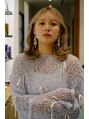 顔まわりにレイヤーを入れて、ふんわり軽やかなミディアムスタイル。赤みを抑えたミルクティーベージュで、透明感とツヤ感をプラス。柔らかく、上品な仕上がりに。