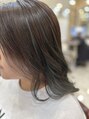 ハイライト+インナーカラーインナーカラーにグリーン系表面にベージュブラウン全体にハイライトが入っているので色が抜けてきても綺麗です!