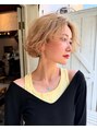 透明感のあるブロンドカラーとミニボブで作るカーリースタイル◎ラインを残したミニボブは巻いてもストレートでも可愛いのでオススメです◎