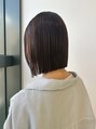 トレンドの切りっぱなしボブはスタイリングオイルをしっかりつける事でぷつっと感がより際立ってお洒落に。