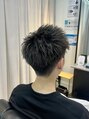 全体的に軽い質感にカットしたツーブロックスタイルです。ワックスとジェルを混ぜて適度なツヤ感とキープ力でセットしています。