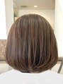 大人ボブ。軟毛とくせをカバーするカットラインでおさまりよく。10トーン・メープルベージュカラーでツヤのある柔らかい仕上がりに。