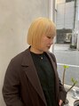 ブリーチに淡いベージュをオンカラーして柔らかいテクスチャーを表現しながら、切りっぱなしボブでエッジを効かせたモードなボブ。