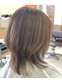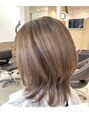 大人女性ミディアムレイヤー。くびれレイヤーでメリハリを。ぼかしカラー。10トーン・ラテベージュカラーで柔らかな仕上がりに