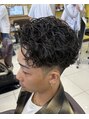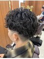 後ろに流すかきあげパーマで上げづらい前髪も簡単に立ち上げます^_^スタイリング剤をつけてる時は少しカールが強く、つけてない時は少し強めの毛流れになる様に巻いてあるので仕事とプライベートでon/offの切り替えしやすいパーマです^_^