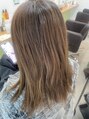 ブリーチ履歴を活かした透明感あるダークグレージュ。落ち着いたトーンでも重く見えず、肌なじみも良く上品な印象に。まとまりも◎