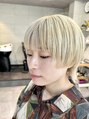 ブリーチ3回にカラーをかぶせた、ホワイトベージュウルフ。サイドはパツッと感を残しつつ、デザインされた個性派のスタイル。