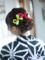 カチューシャ風編み込みがかわいいアレンジスタイル。えりあしまですっきりとまとめつつみつあみをくずすことでふんわりとしたかわいさが出るようにしています。あみこみがアクセントになるのでヘアアクセサリーがなくてもOKです!【いわき】