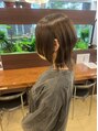髪質、生え方、骨格に合わせたウルフレイヤーをベースにスライドカットで質感を調整しました。