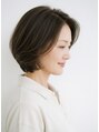 上品で洗練された大人のショートボブスタイル。柔らかな丸みとナチュラルな内巻きが、エレガントで知的な印象を演出します。顔まわりをすっきりと見せながら、女性らしい優雅さをキープ。