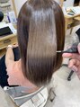 酸熱トリートメント×カラーで髪の内側からしっかり補修しながら、艶やかな透明感カラーに仕上げました!手触りも柔らかく、毎日の扱いやすさもUP