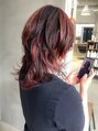暖色ハイライトデザインレイヤーカットウルフカットボルドー/ホットペッパービューティー