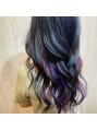 トップをネイビーカラーにすることで色落ちはミルクティーになるので明るめカラーも楽しめます。インナー部分はピンク・パープル・ブルーをミックスして巻いたアレンジもカラフルに◎