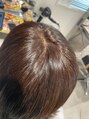 白髪染めを使わず、おしゃれ染めで自然に白髪をカバー。硬く見せず、柔らかさと艶をプラス。根元の浮きも抑え、なじみ良く染めています。