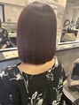 肩につかないくらいのぱっつんボブです。艶髪になりたい方にオススメです。癖のある方はストレートパーマや縮毛矯正の施術をする事でスタイリングが楽になります。