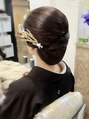 ホステスさんの和髪スタイルで、面をツヤっとさせるシニヨンスタイルです。銀座のホステスさんはお正月に稲穂をつける風習があります!なので、髪飾りで稲穂を使用しております♪