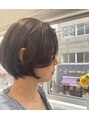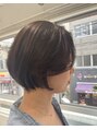 顔まわりにレイヤーを入れた前下がりボブ。首元すっきり、軽さと動きのある大人スタイルに仕上げました。