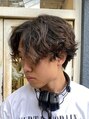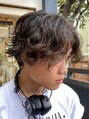 センターパートのハンサムショートベースのスタイルに、ツイストスパイラルパーマをかけたスタイル。ラフに無造作に動く髪の毛が決めすぎてなくて少し野暮ったくてかっこいいスタイル。スタイリングはワックスでマットにしてもグリースで艶を出しても◎