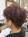 周りは刈り上げてスッキリカラーもレッド系を少し混ぜて周りとの違いを
