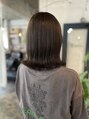 暗いけど透明感のあるグレーベージュは切りっぱなしの外ハネボブとの相性は抜群です。トリートメントをすることでより透明感と色もちが続きます