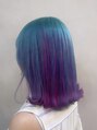 シアンブルー/ネイビーブルー/ハイトーンボブ/切りっぱなしボブ/ラベンダーピンク/アンブレラカラー/インナーカラー/ピンクカラー/横浜美容室/デザインカラー/グラデーションカラー/ブルーカラー/ロブ/ブルーグリーン/ターコイズブルー/寒色系カラー