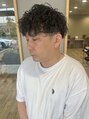 波巻きパーマ強めのウェーブで細かく動きを入れる事で動きの複雑さを際立たせオシャレなスタイルに形が決まってくるのでワックスもやりやすいのがポイント!