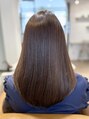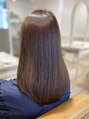 肌馴染みの良いベージュブラウンで、柔らかく女性らしい印象に。ツヤを引き出すストレート仕上げで、美人度アップのセミロングです。