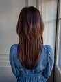 個性派ロングウルフスタイル。ベースの長さは長めに設定してレイヤーは顎下くらいからザクザク入れています。少しカールをつけただけで動きが出てかわいいです!ヘアカラーはオレンジブラウンであたたかみのある雰囲気を出しています!【いわき】