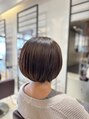 毛先のボリュームを調整しつつ丸みが出るショートスタイルで落ち着きと可愛さを!ほんのりブラウンカラーで重くなりすぎないように!◎