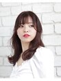 ワンレンのセミロングにピンクブラウンで可愛さUP。コテで緩く巻いてガーリーな印象に