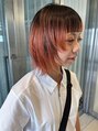 根元の黒を活かしたコントラストカラー!毛先はピンクが入った明るめオレンジ。カットはレイヤーたっぷりで軽く♪