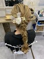 高めから中間めのボリュームのあるルーズアップ☆毛先を残して巻いてるのがポイントです☆