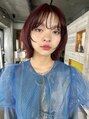 【阿形】顔周りステップカットのシャギーレイヤーチェリーレッド