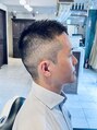 軍人向けのボウズ系ショートスタイルをカジュアルに作りました。とにかく短くしたいけど丸ボウズになるのは嫌という方へオススメです。仕上げはジェルでパパッとできちゃいます!大宮/メンズカット/メンズパーマ/さいたま新都心/鉄道博物館/日進