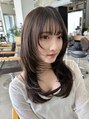 たっぷり入れたレイヤーがポイントのミディアムロングスタイル。地毛風カラーは透明感のある黒染めしないカラーで染めています。