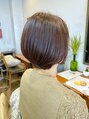 頭の形が綺麗に見えるショートスタイルです。オーガニックカラーのグレージュ系でやわらかい雰囲気になるようお染めしております。